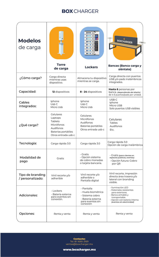 Perfecto para usar junto con nuestras torres o lockers de carga